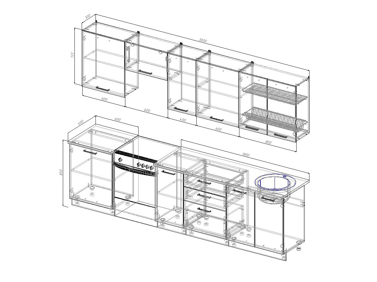 - Кухонный гарнитур Демо 3000 низ МДФ