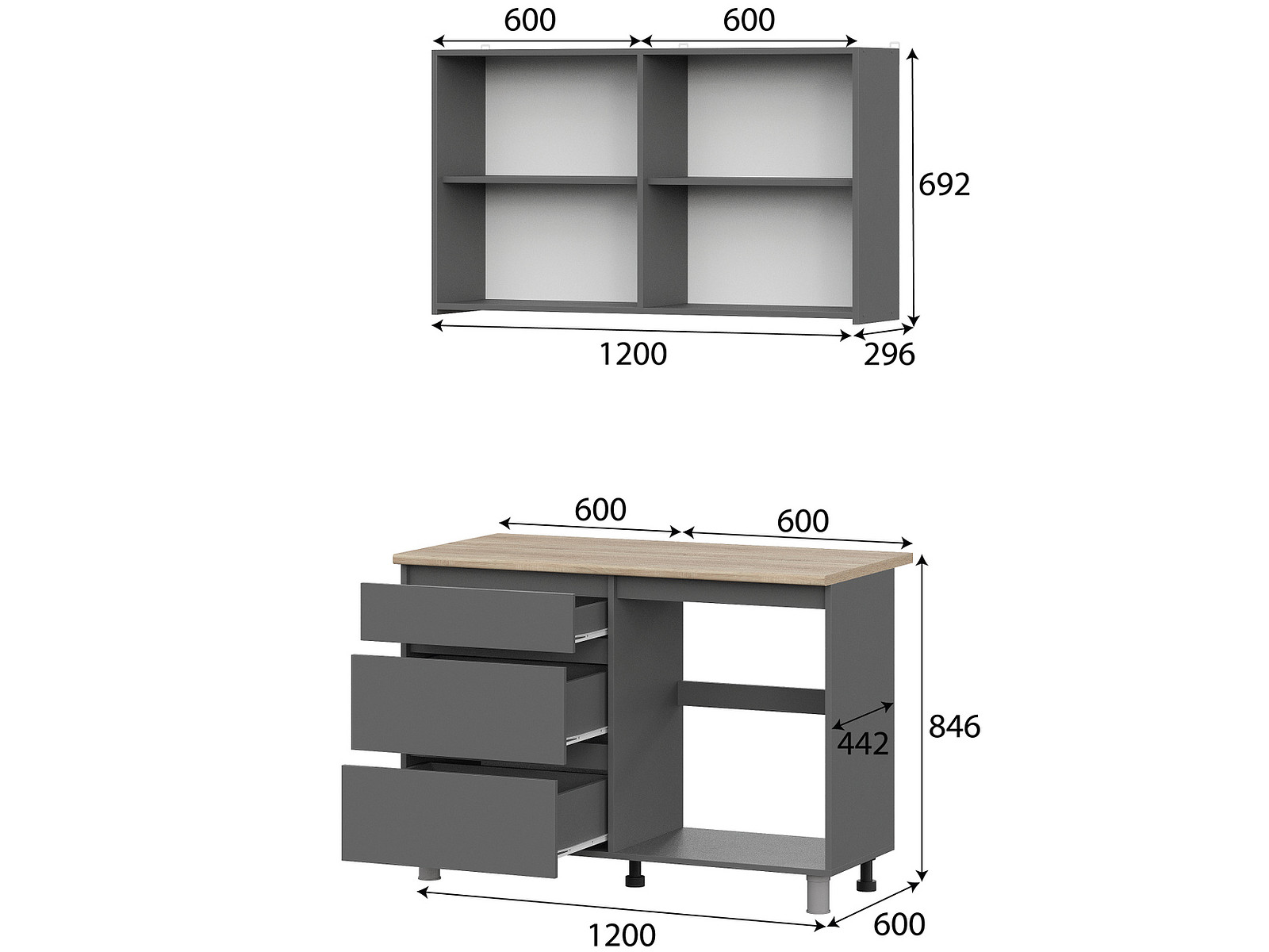Сборка нижнего корпуса шириной 1200мм не универсальная (ящики всегда слева).