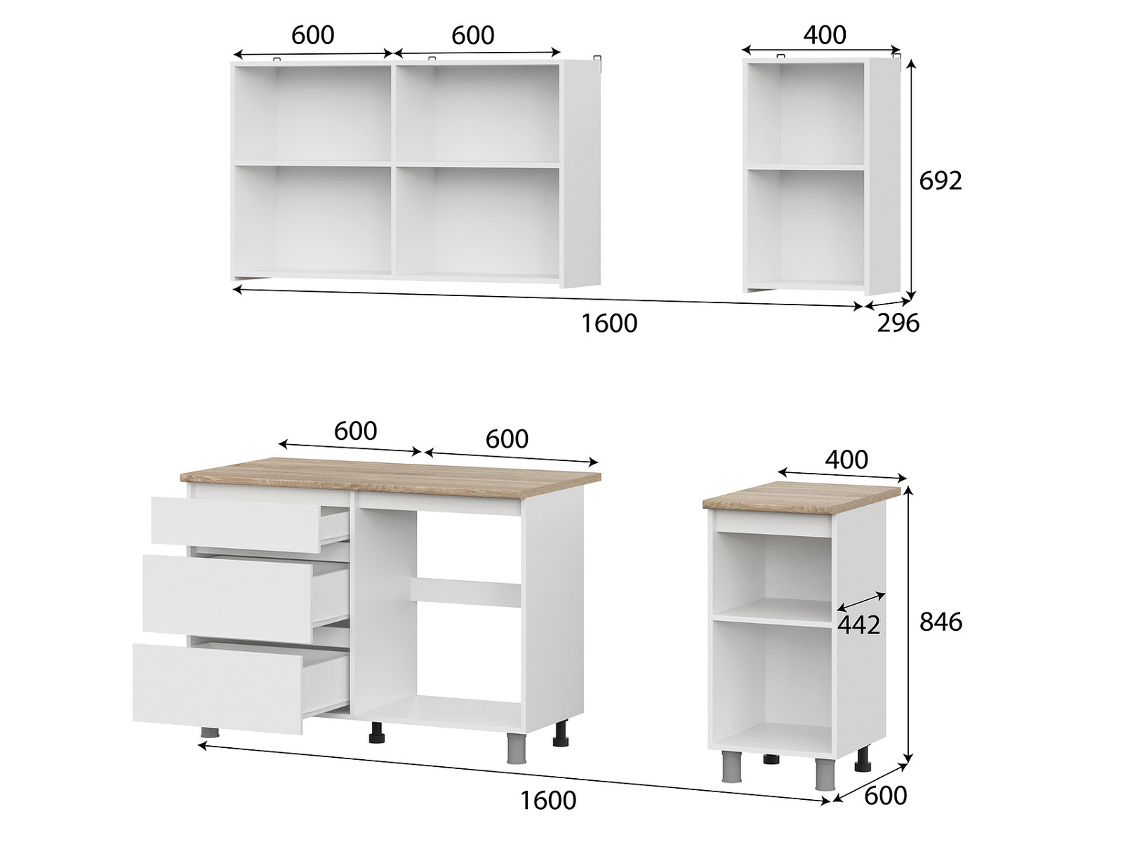 Высота стола со столешницей / высота стола без столешницы - 846 / 820 мм