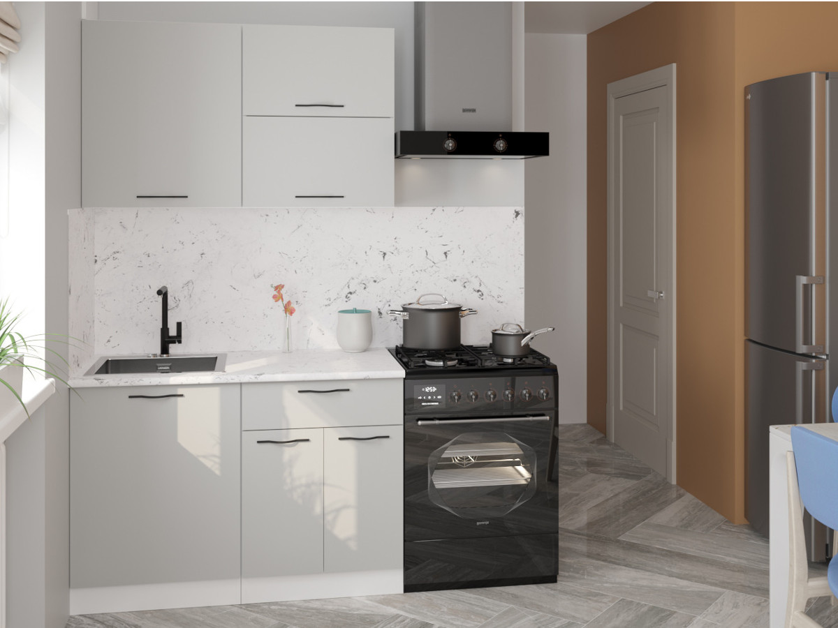 Мойка, смеситель, стеновая панель и посудосушитель в комплект гарнитура не входят.
