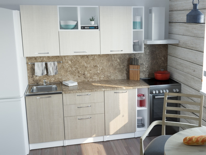 Мойка, смеситель, стеновая панель и посудосушитель в комплект гарнитура не входят.