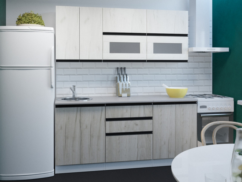 Мойка, смеситель, стеновая панель и посудосушитель в комплект гарнитура не входят.