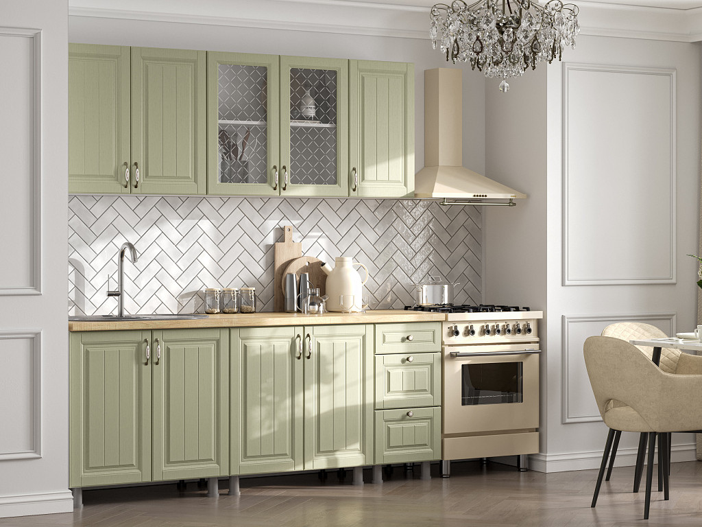 - Кухонный гарнитур Прованс 2000 МДФ без столешниц Фисташковый текстурный