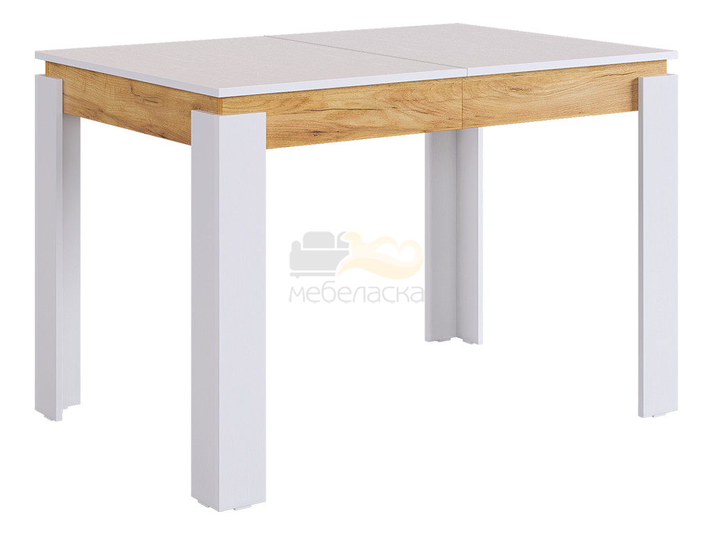 - Стол обеденный раздвижной Гермес 2 белое дерево/дуб крафт золотой