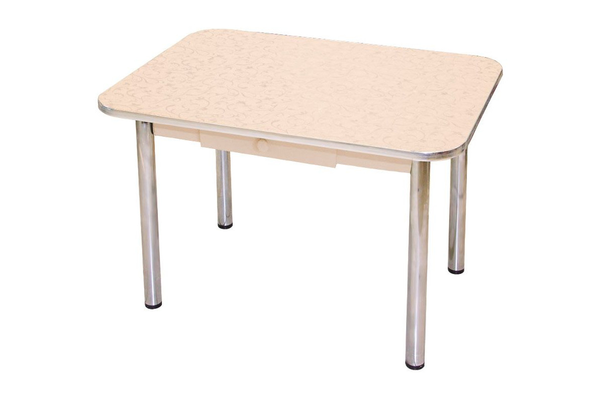 - Стол с ящиком Маэстро бежевые цветы/дуб