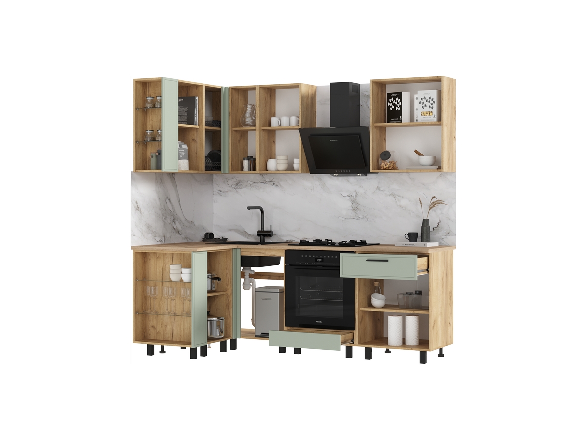 - Кухня Бьянка 1,2*2,2 м Олива софт, Дуб Крафт