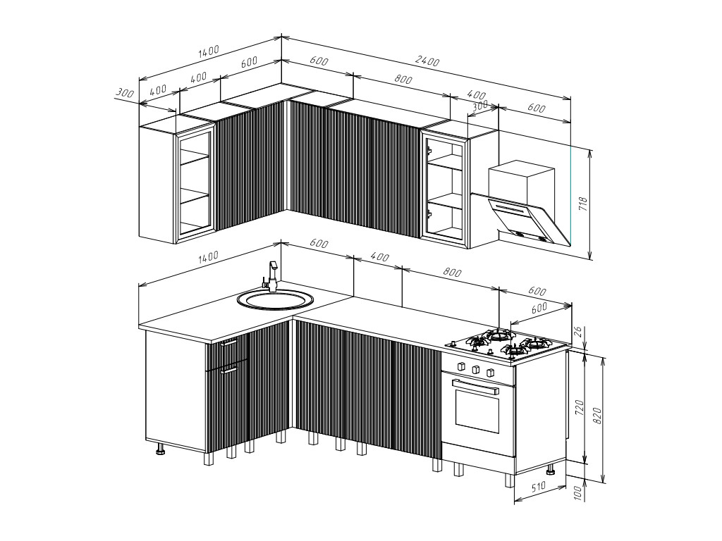 - Кухня Оливия NEW 1,4*2,4 Кашемир, Дуб Крафт