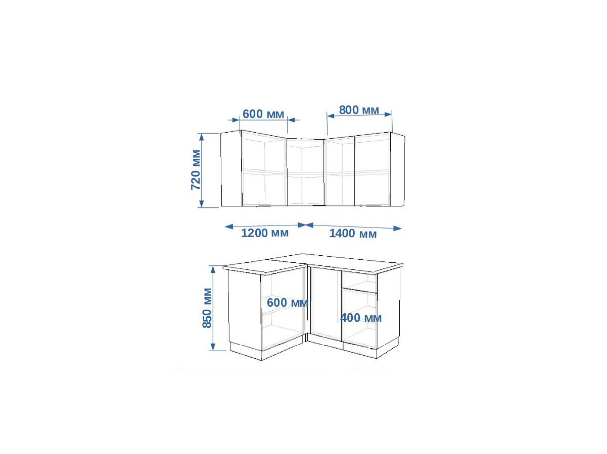 - высота верхних шкафов 720 мм