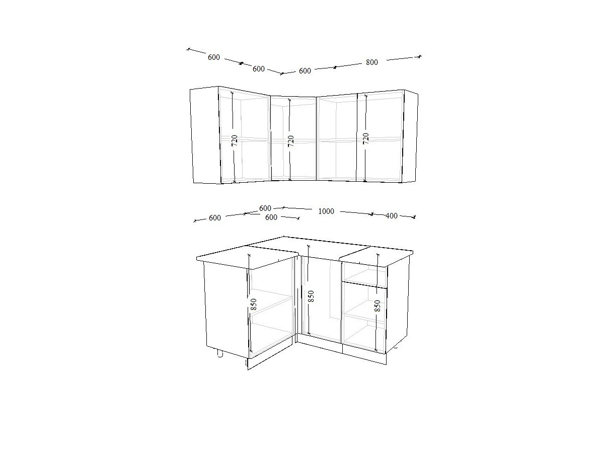 - высота верхних шкафов 720 мм