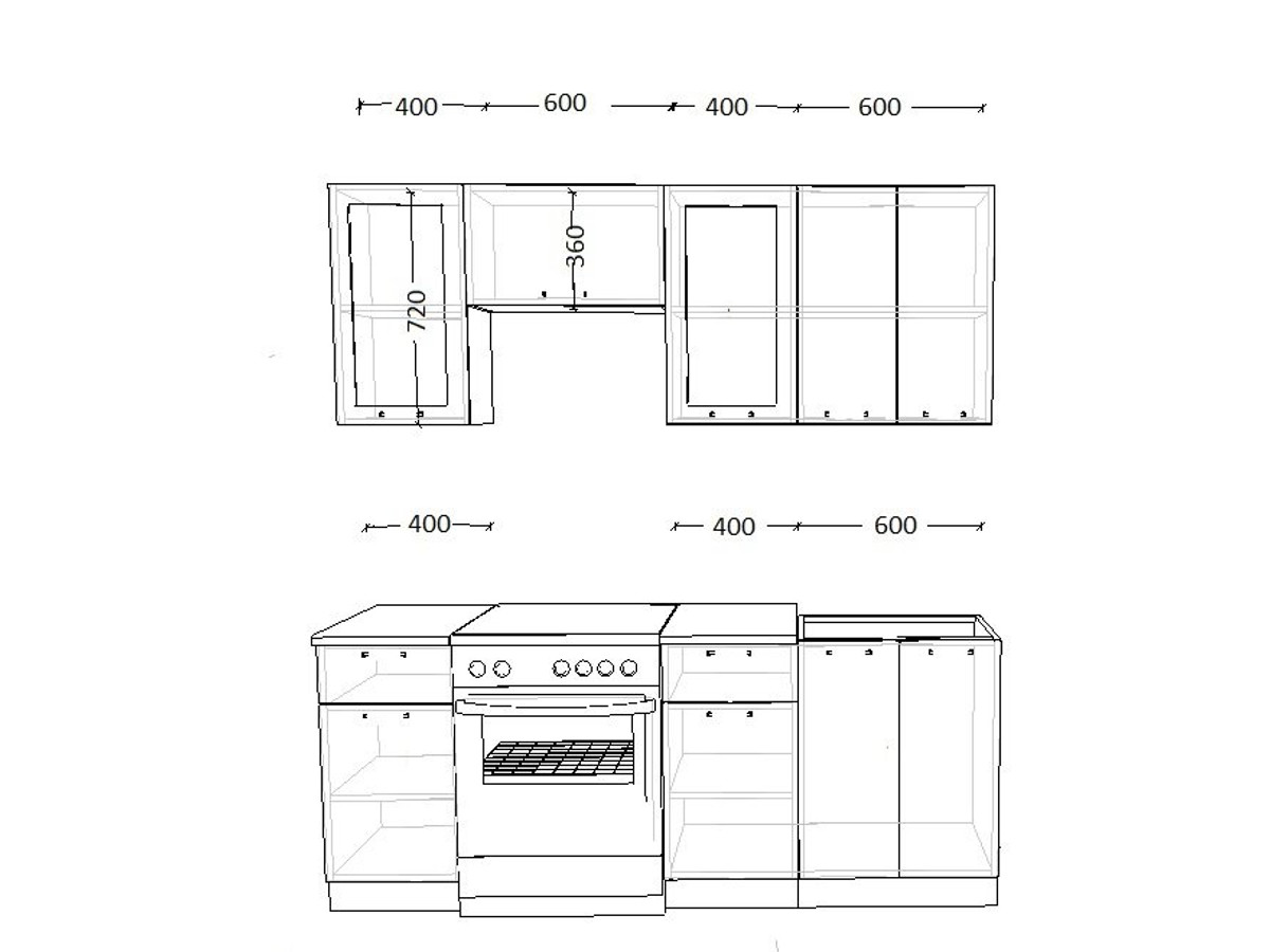 Кухонная мойка, стеновая панель, посудосушитель, планки для столешницы в комплект не входят.