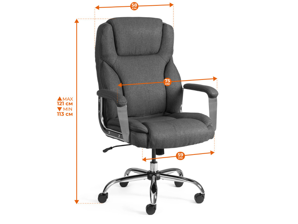 - основание кресла выполнено из 5-лучевой стальной крестовины с хромированным покрытием, крестовина разборная.