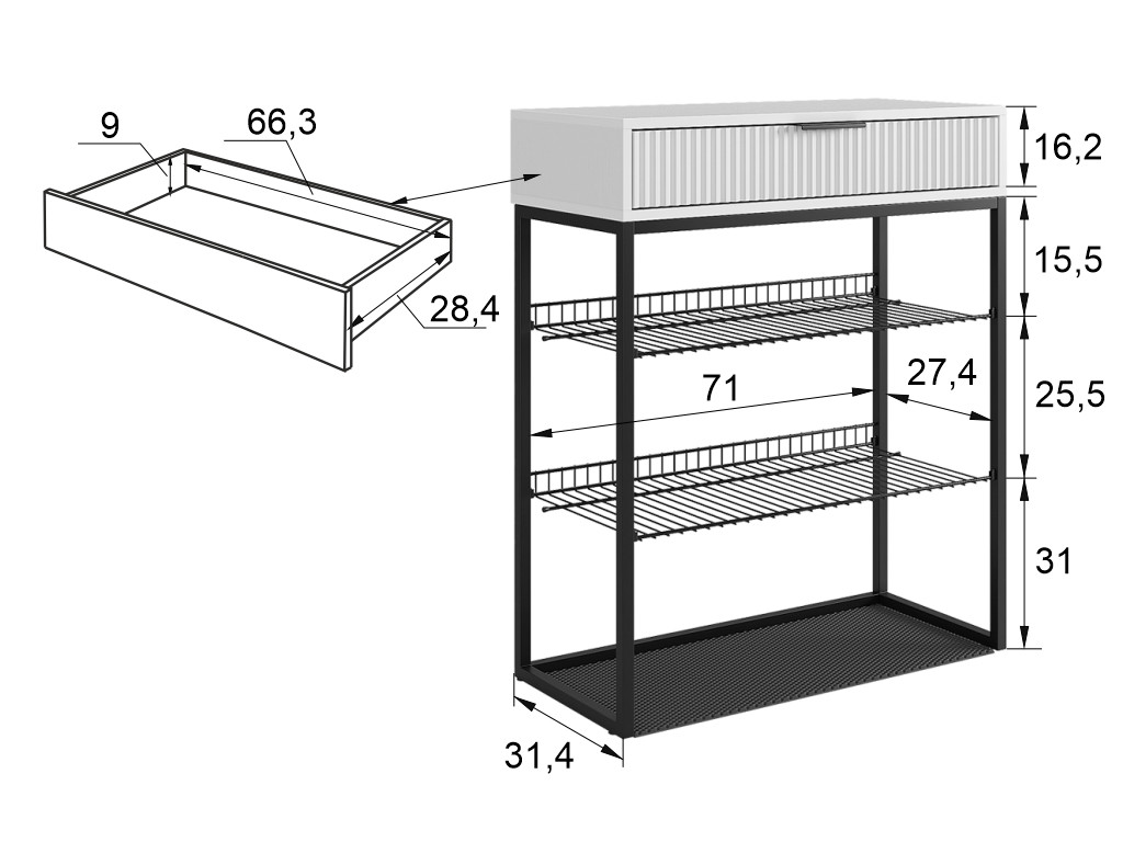 - Обувница Вельвет белое дерево/белый матовый/золото