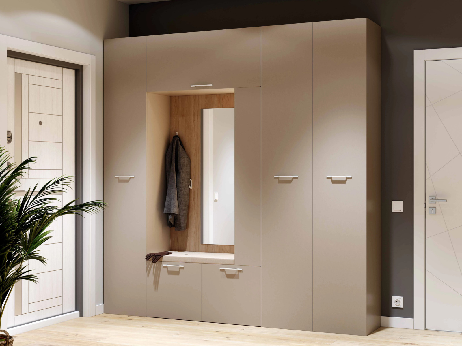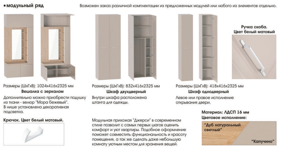 Цена за комплект: Вешалка с зеркалом без светильника, Шкаф 1 дверный, Шкаф 2 дверный