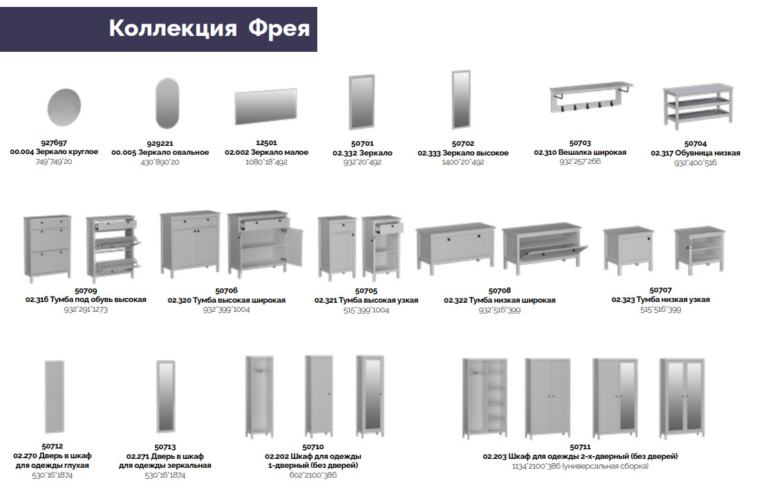 Цена за комплект: Шкаф для одежды 2-дверный, Дверь в шкаф для одежды глухая (2шт), Вешалка широкая, Тумба низкая широкая