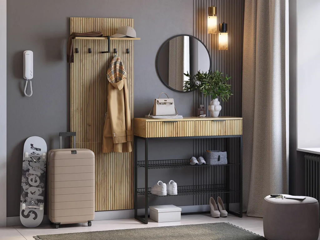 - Прихожая Мебельсон К2 дуб крафт золотой/черный муар