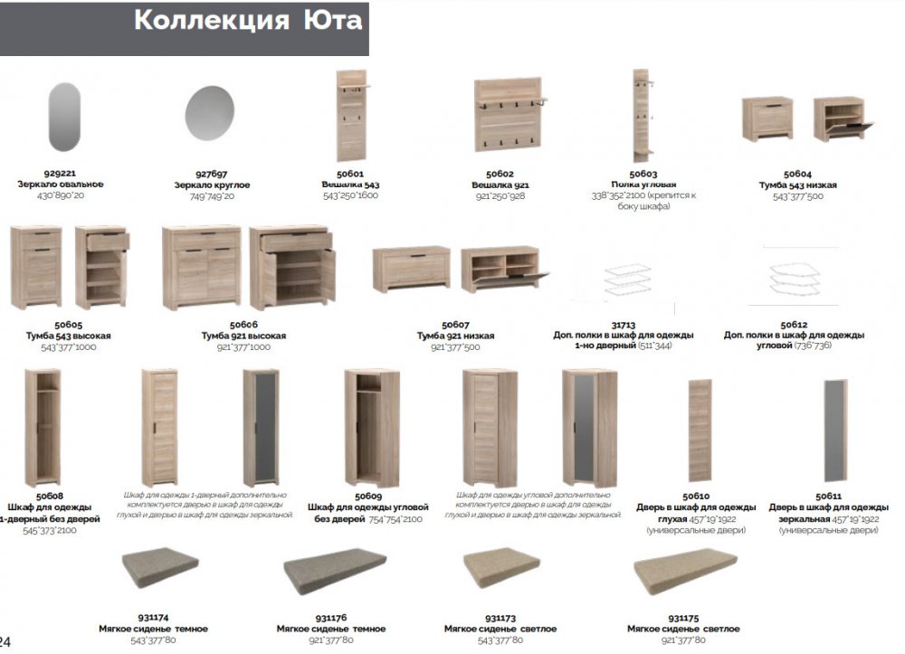 Цена за комплект: Вешалка широкая, Тумба высокая узкая, Тумба низкая широкая, Шкаф для одежды 1-но дверный + Дверь в шкаф для одежды глухая