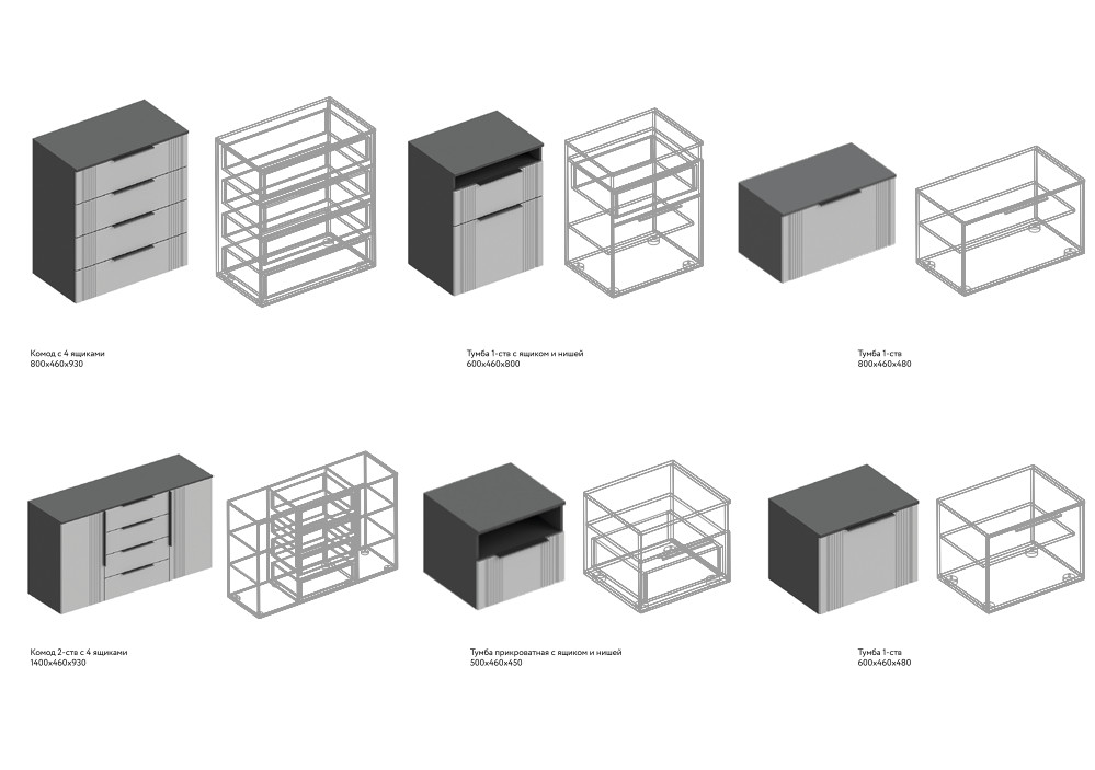 Цена за комплект: Комод с 4 ящиками, Шкаф 2-створчатый для одежды, Панель под вешалки 800, Тумба 1-створка 800, Зеркало , Тумба 1-створка с ящиком и нишей
