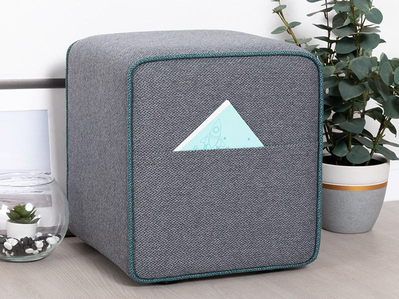 Боковые карманы на противоположных сторонах пуфа, два противоположных торца оформлены контрастным кантом