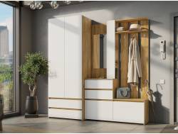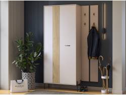 Тумба с сиденьем стеганная экокожа с выдвижным ящиком и открытой полкой для обуви.
