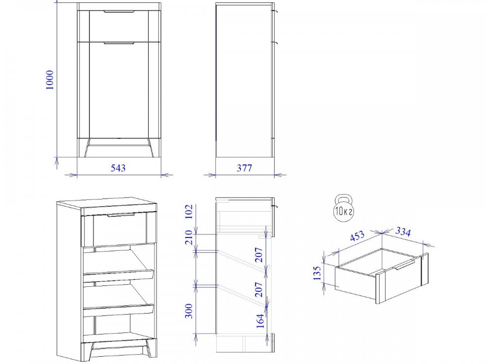 Размер ШхГхВ: 543*377*1000 мм