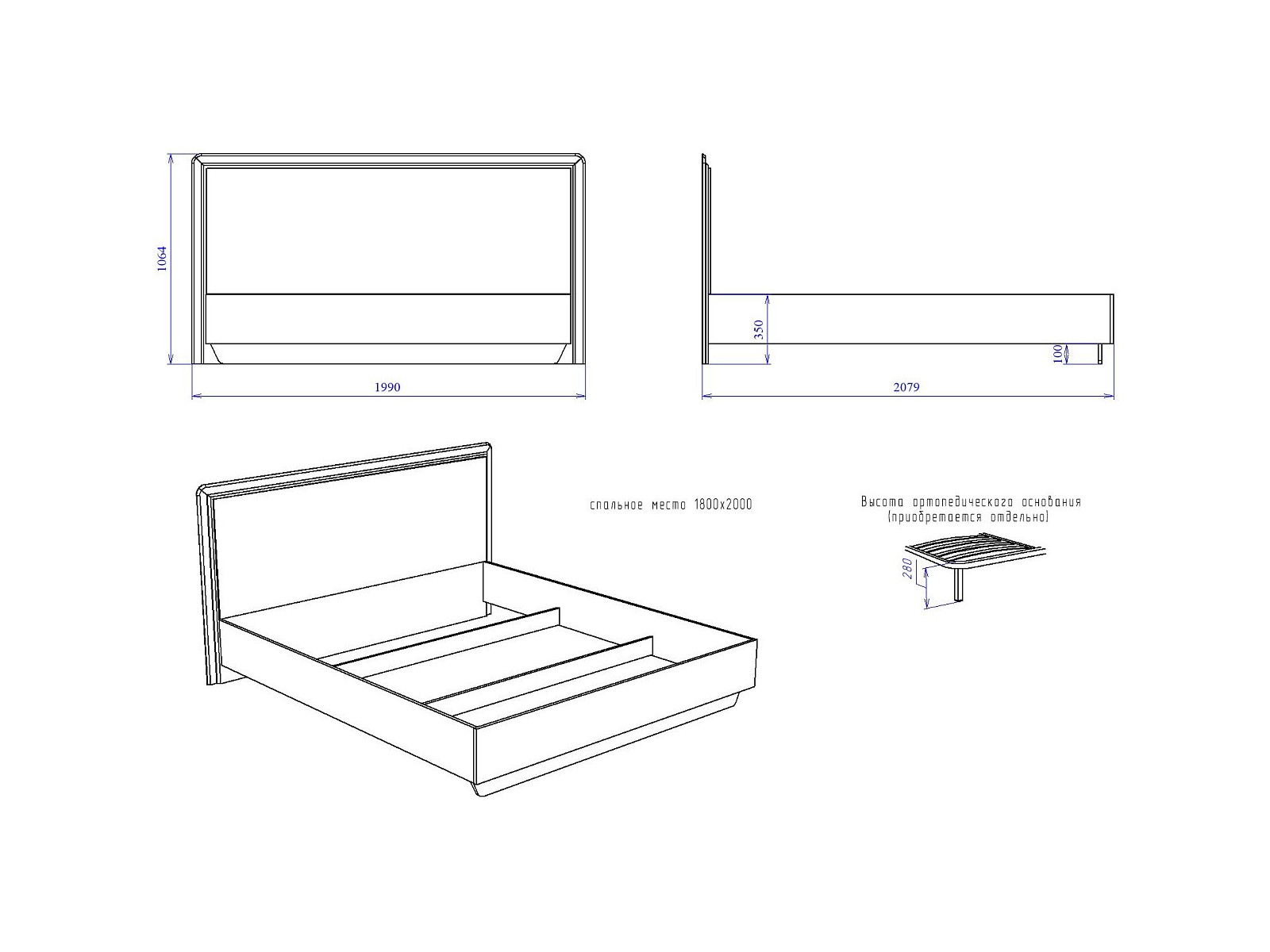 Спальное место: 1800*2000 мм