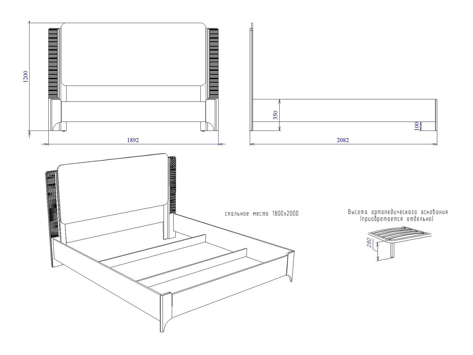 - Кровать 1800 Сиде Мокко (рогожка) без основания