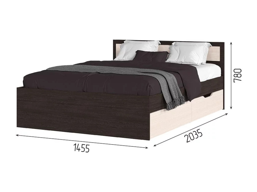 Кровать Гармония с ящиками 140х200 см Венге/Дуб белфорд