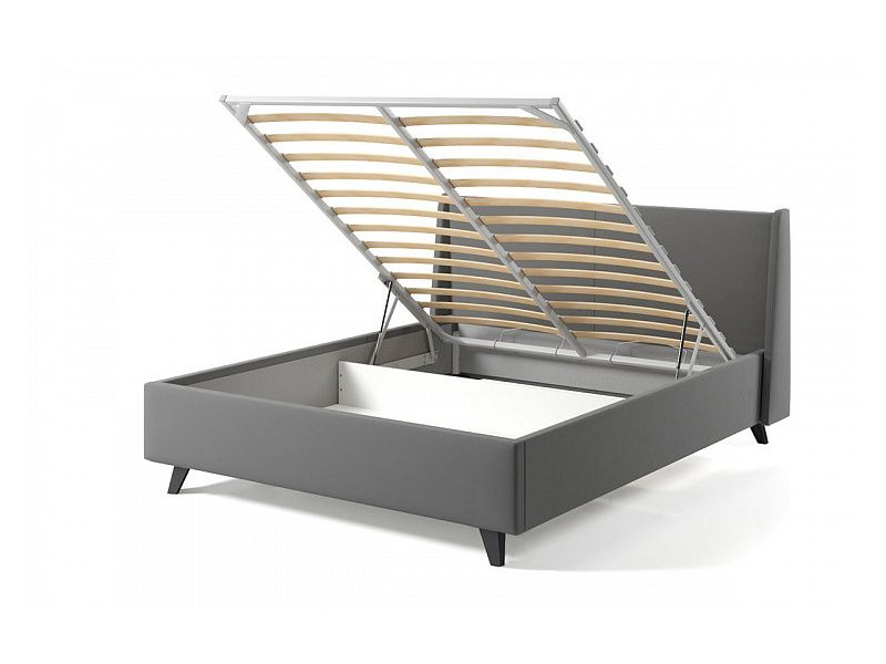 Кровать Лорен с ПМ 1600х2000 мм микровелюр светло-серый