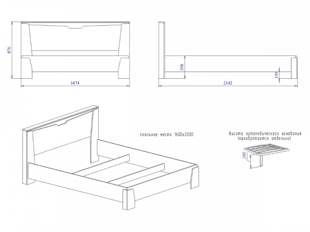- Кровать Люкс 1600 Prime Гарда Дуб Винтерберг без основания