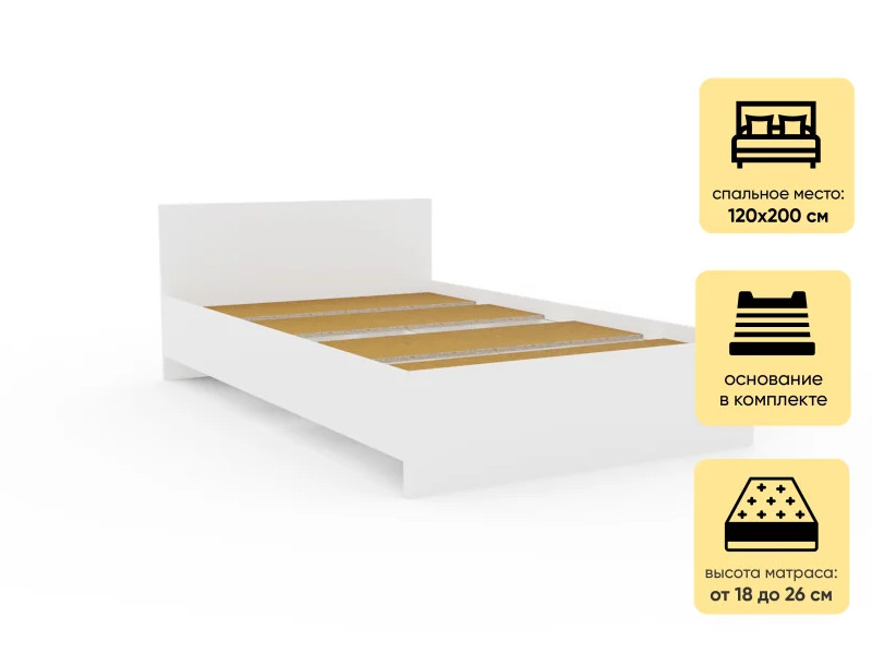 - Кровать Монблан 120х200 см Белый Шагрень
