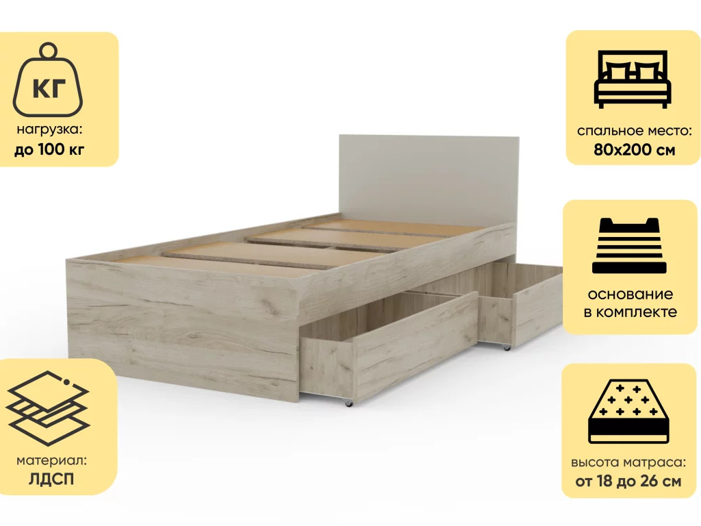 - Кровать Монблан Kids с ящиками 80х200 см Кашемир