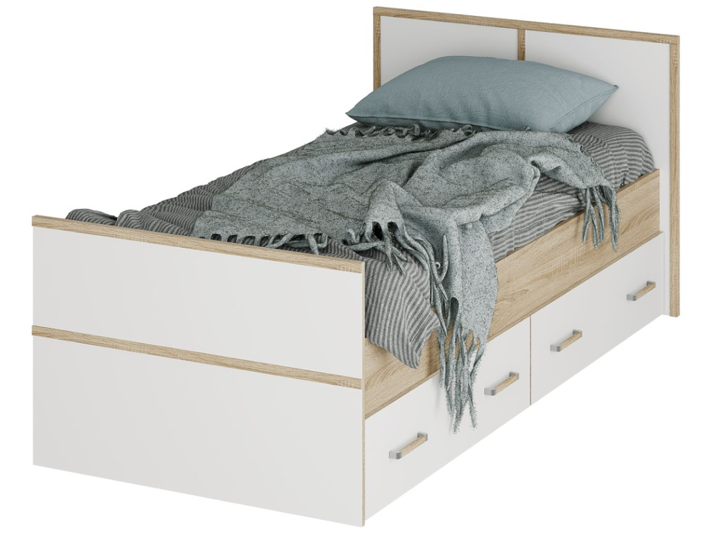 Кровать Сакура 0.9 LIGHT с проложками Дуб сонома-Белый