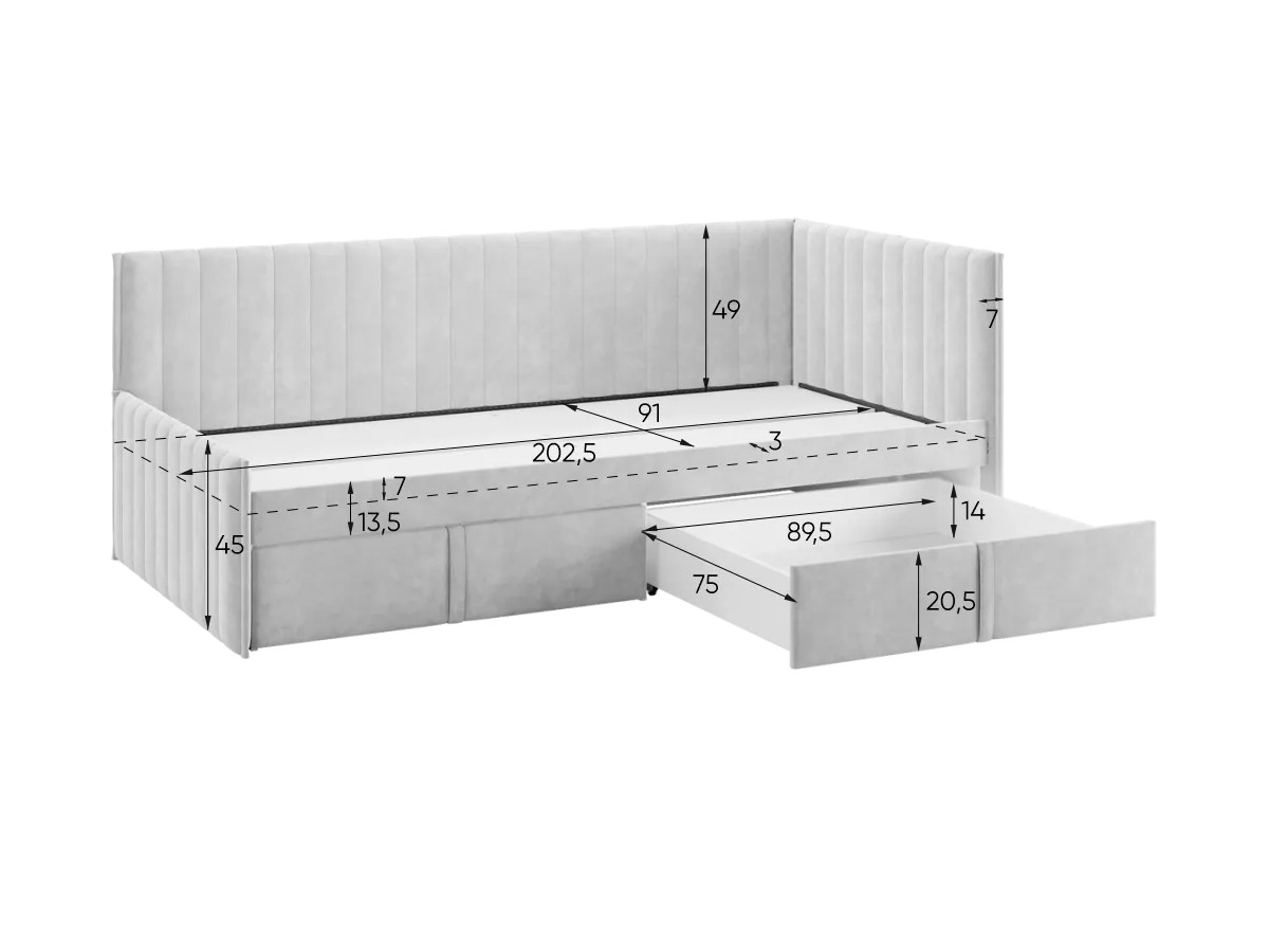 Кровать-тахта с ящиками Твикс цвет велюра графит