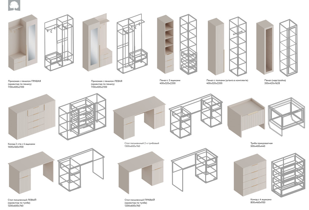 - Фасад: МДФ с фрезеровкой, плёнка ПВХ Софт Сантьяго, толщина 320-350 микрон МКМ (с праймером)