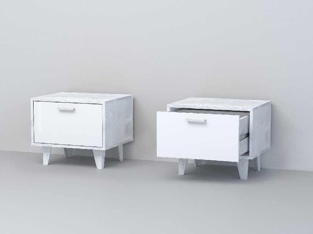 Тумба прикроватная Эго Т-5 бетон светлый/белый глянец на ножках