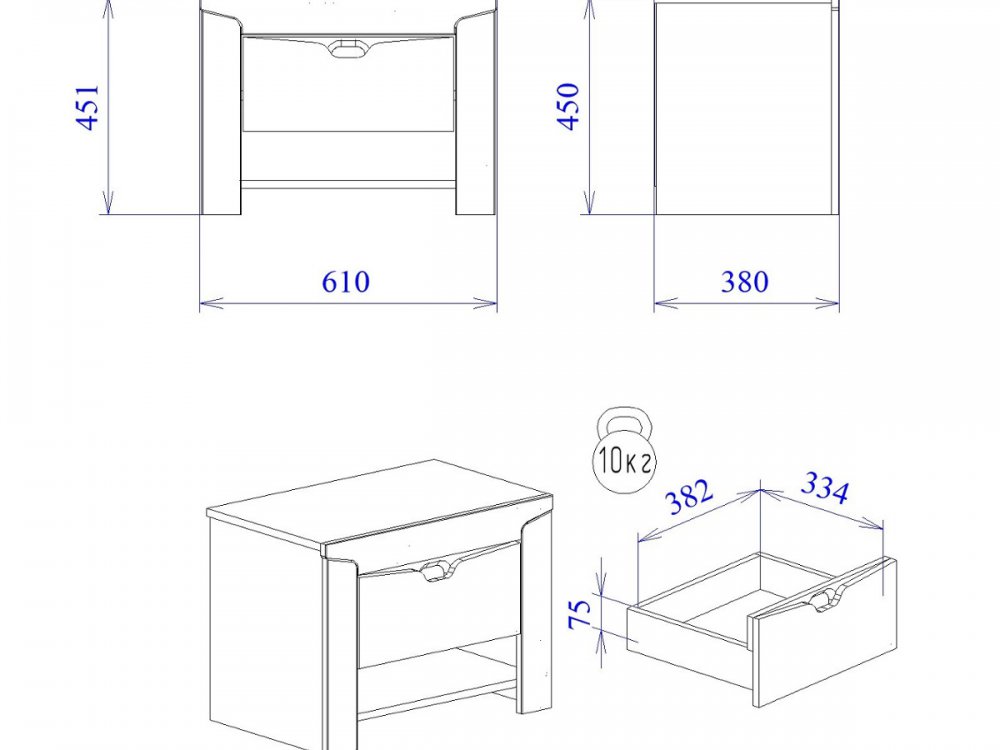 Максимальная нагрузка на ящик - 10кг