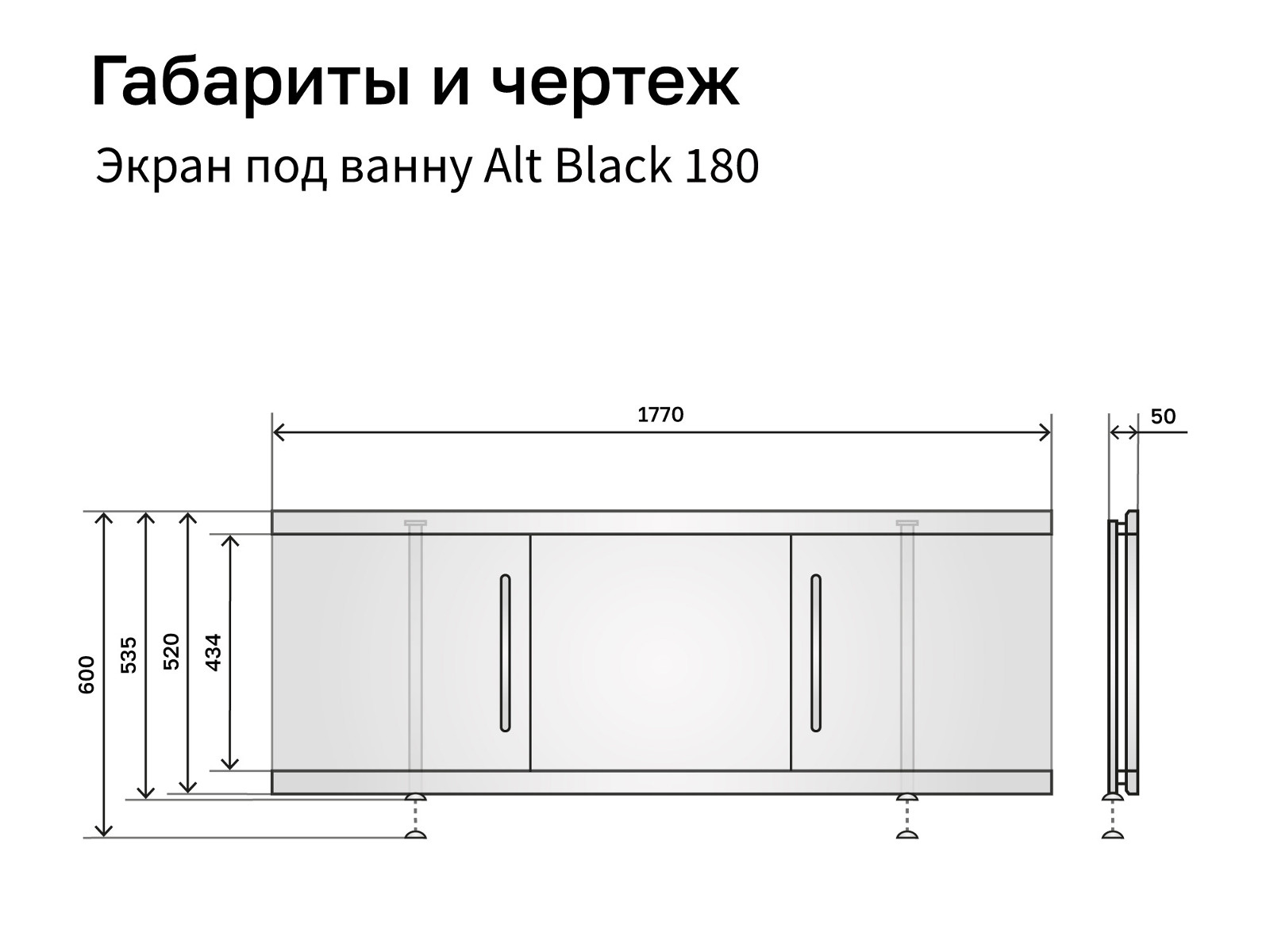 - Экран под ванну МДФ Alt Black 1800 мм дуб