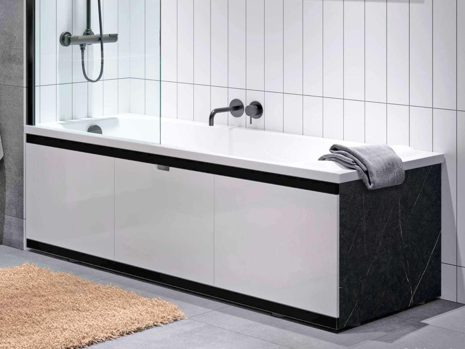 - Экран под ванну МДФ Rita Black 1500 мм белый