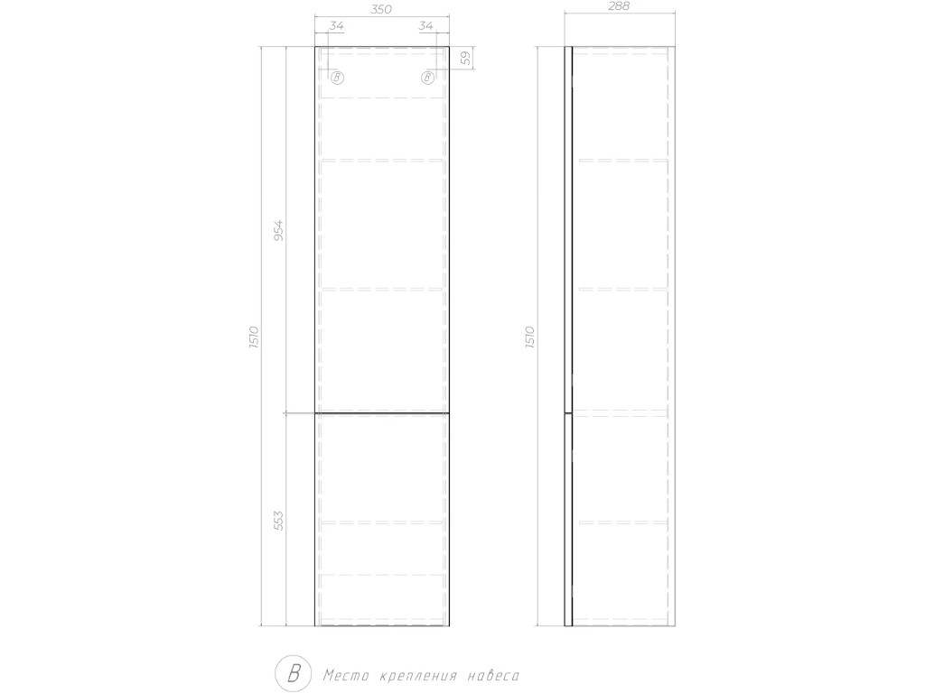 Система хранения: 3 стеклянные полки за 2-мя распашными дверцами, петли с доводчиками, открывание левое/правое