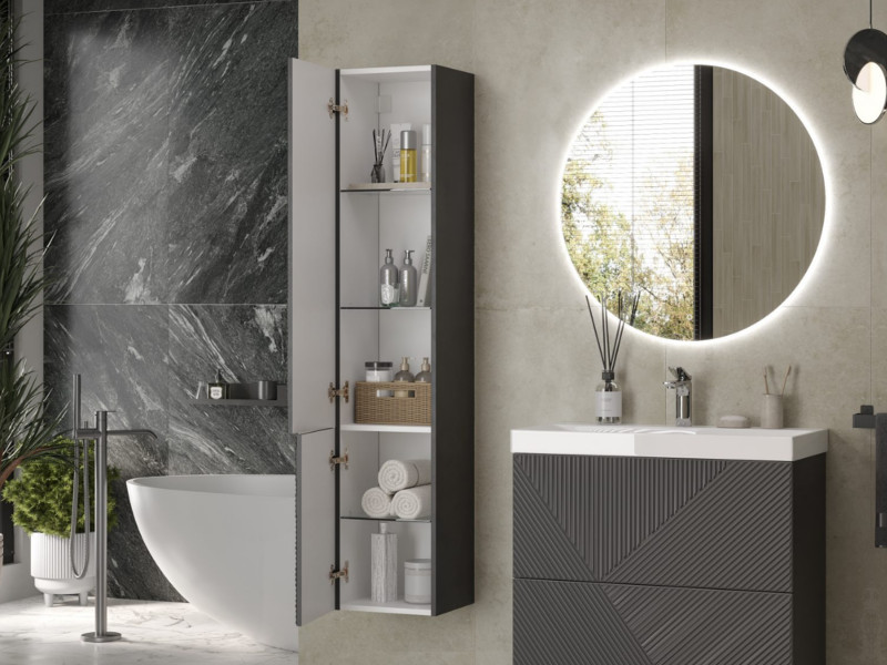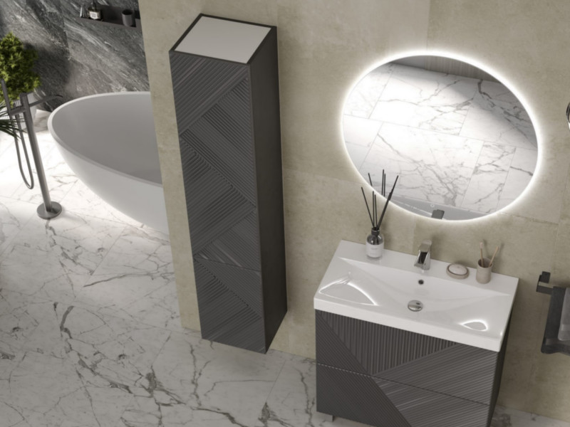 Материалы тумбы: МДФ, влагостойкая ЛДСП, полимерное покрытие ПВХ, европейская фурнитура