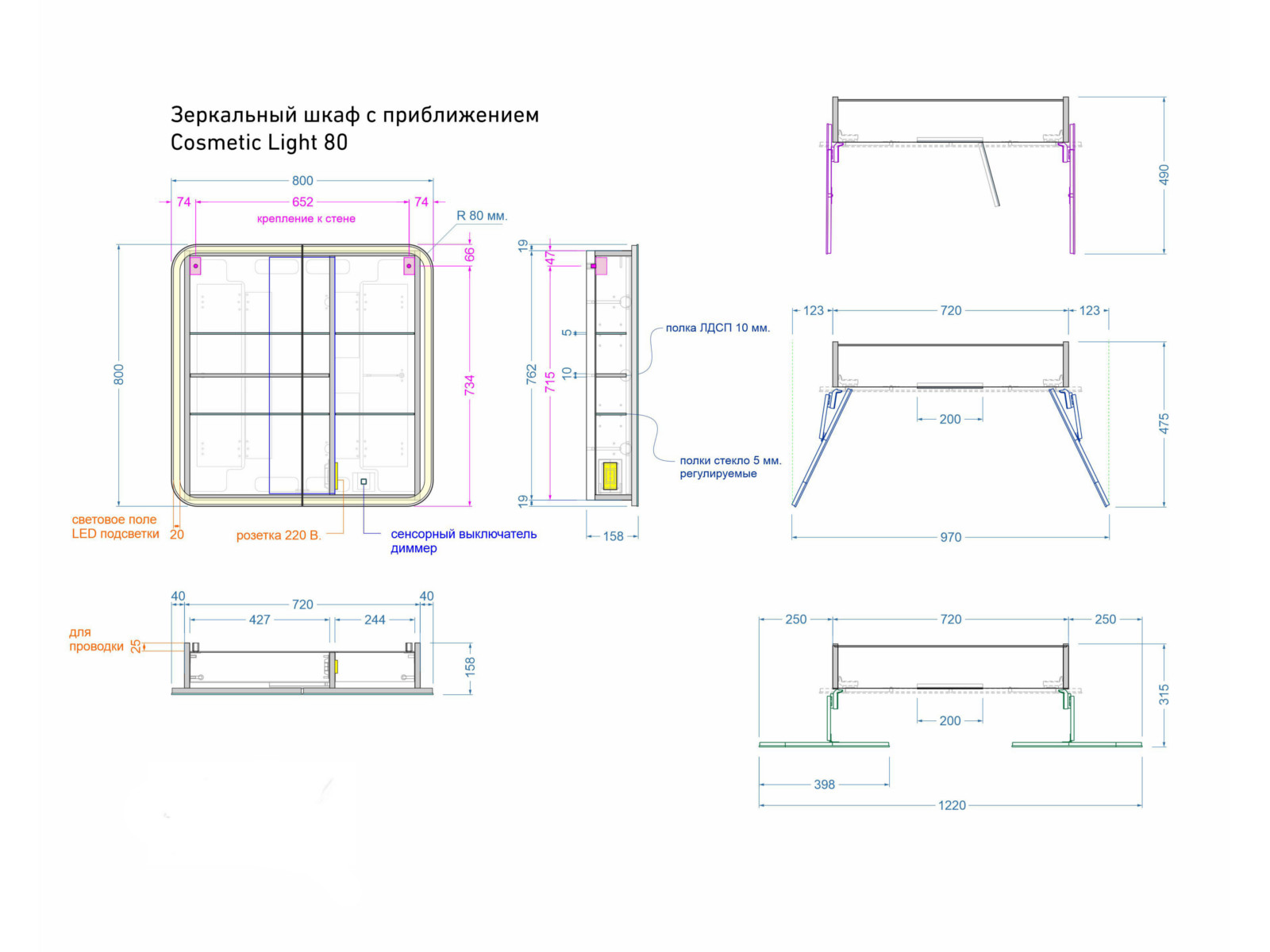 - Шкаф-трюмо зеркальный Cosmetic Light 80