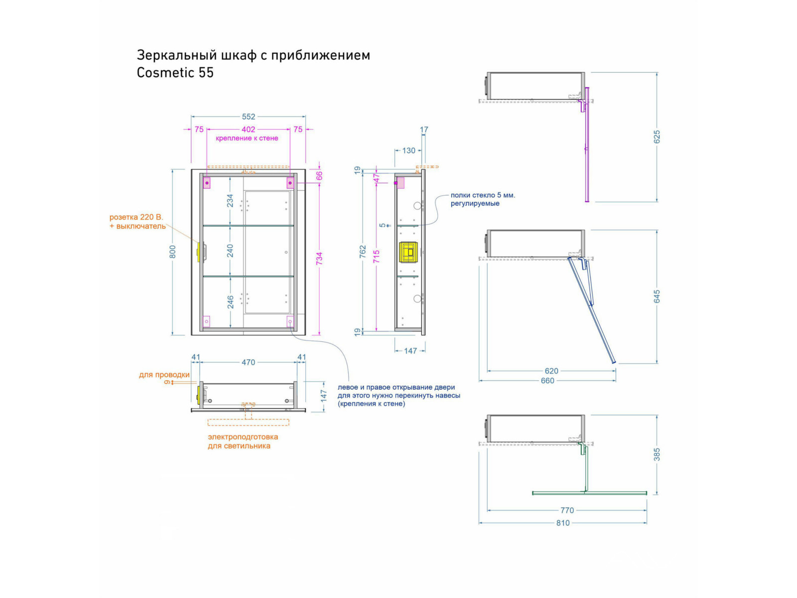 Шкаф зеркальный Cosmetic 55 без светильника