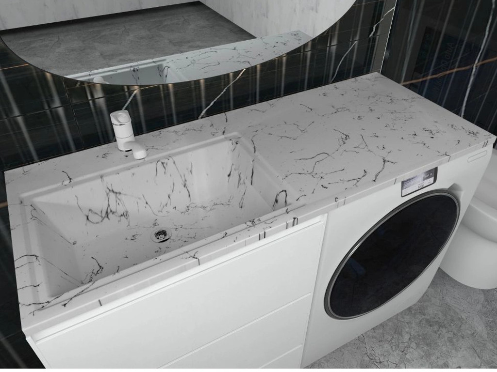 Раковина над стиральной машиной Uperwood Марсал левая белый мрамор