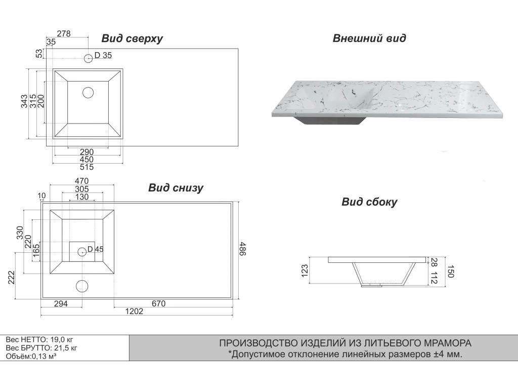 - Раковина над стиральной машиной Uperwood Марсал левая белый мрамор