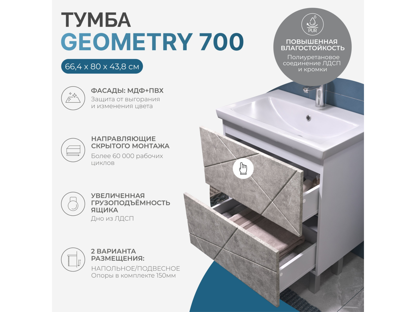- Тумбы Geometry 700-0-2 (под ум Фостер) бетон