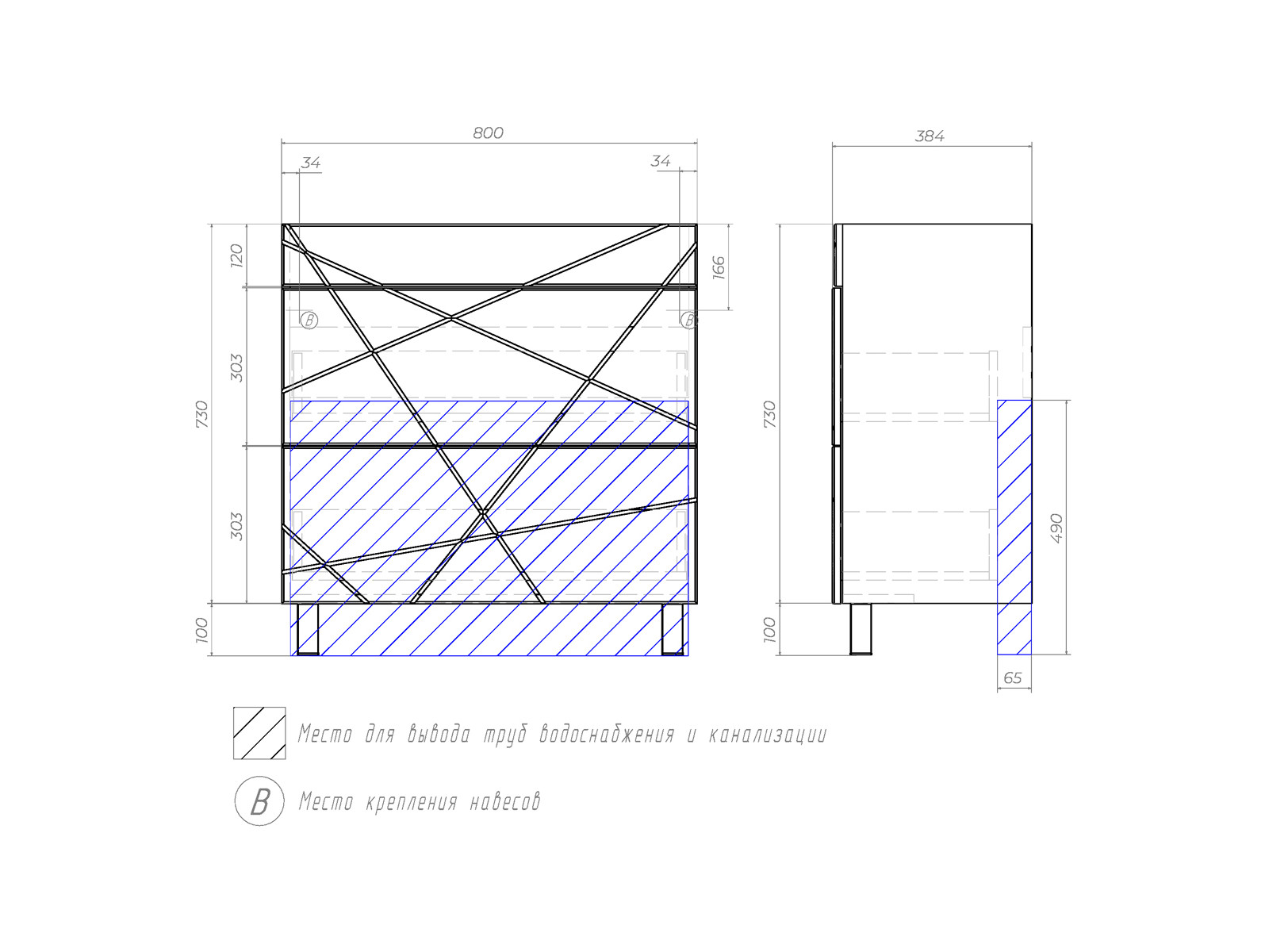 - Тумба Geometry 800-0-2 умывальник 9696 белый