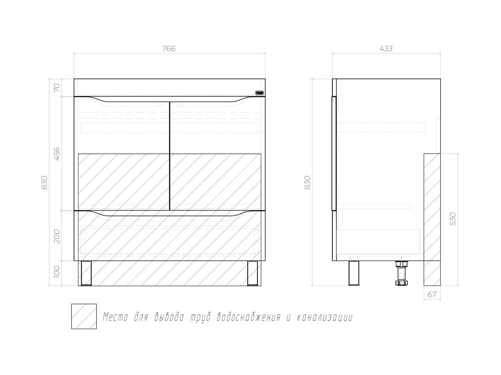 Размер тумбы с раковиной (ШxГxВ): 800x450x850 мм
