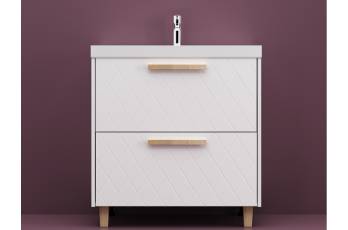 - Тумба Кристалл 60 напольная 2 ящика ручка дуб, раковина Океан 60 Суфле