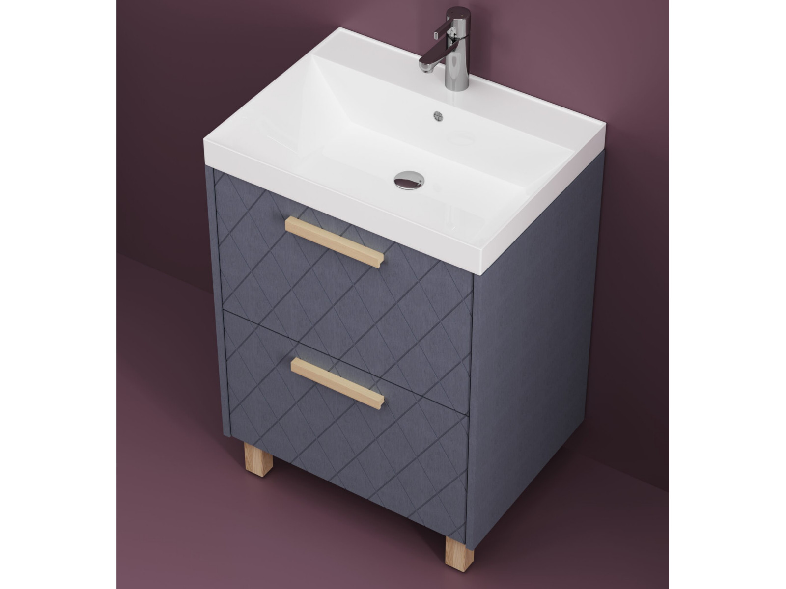 - Тумба Кристалл 70 напольная 2 ящика ручка дуб, раковина Слим 70 шато азур