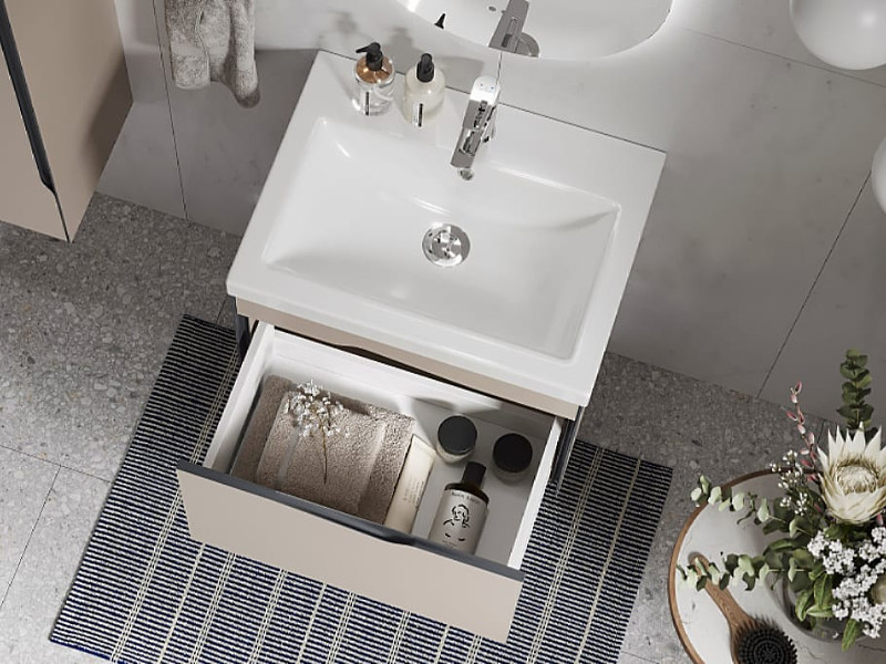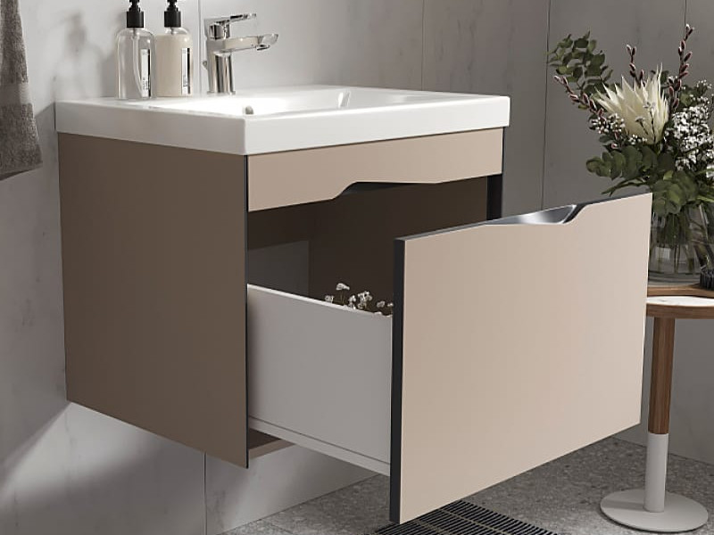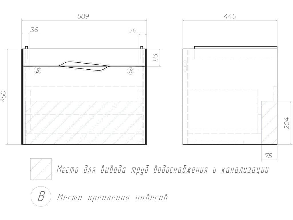 - Тумба под раковину Krona 600-0-1 Como навесная серый камень